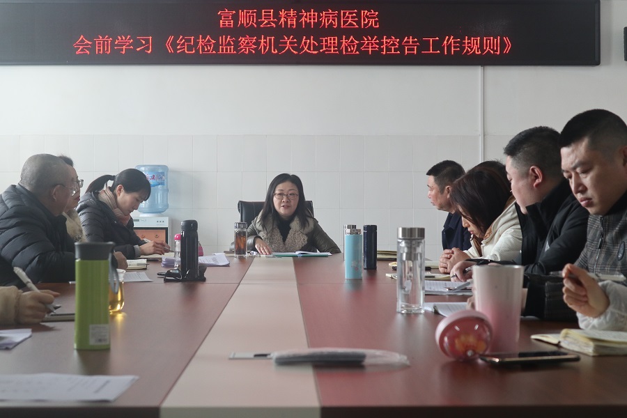 富顺县精神病医院会前学习《纪检监察机关处理检举控告工作规则》