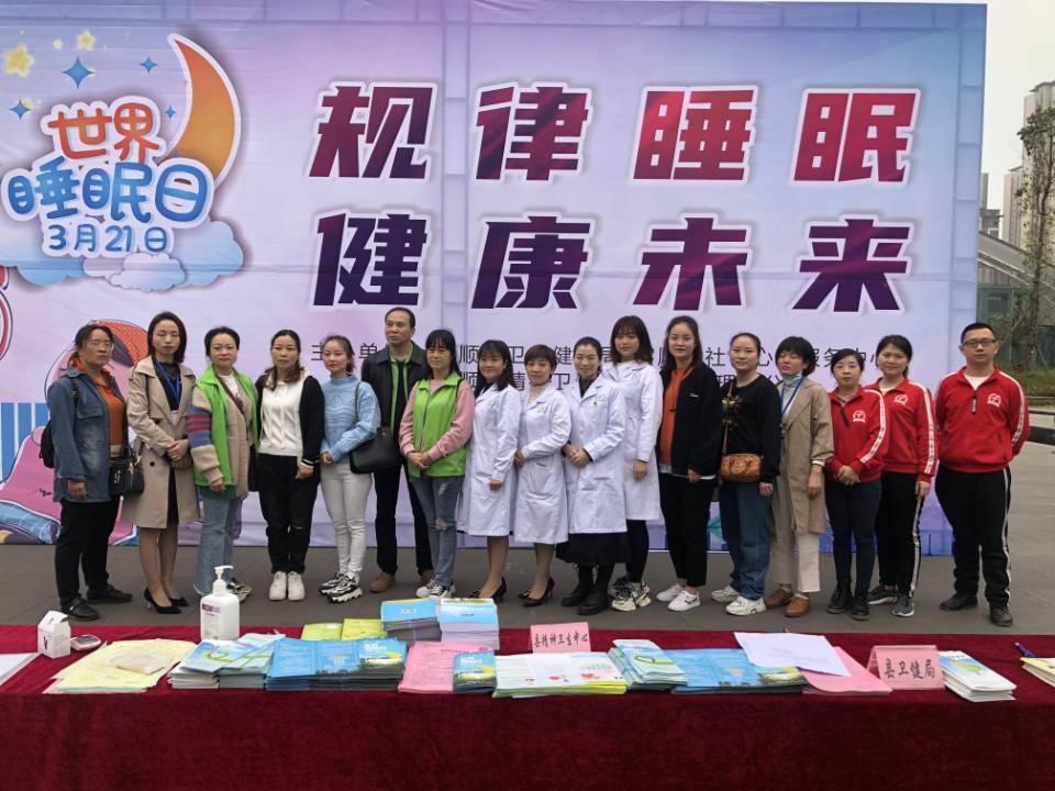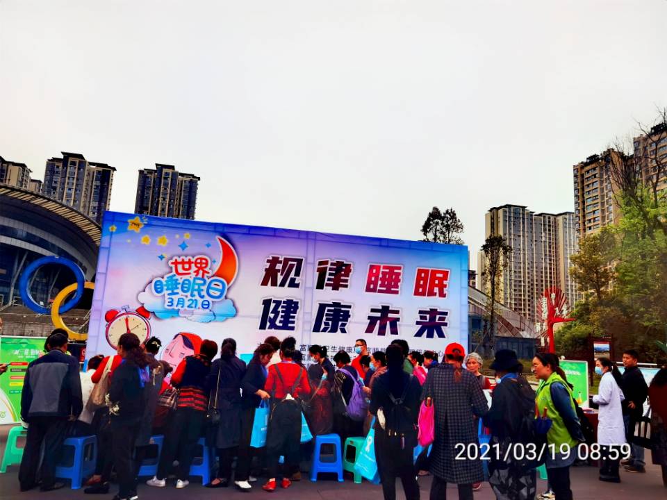 为引起人们对睡眠重要性和睡眠质量的关注,提醒人们更好地关注睡眠健康及质量。3月19日上午,我院在县卫健局组织下,协同县社会心理服务体系建设领导小组办公室、县疾控中心,在富顺县体育馆开展以“规律睡眠 健康未来”为主题的世界睡眠日宣传活动。
