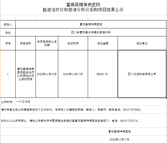富顺县精神病医院 院内采购检验试剂耗材配送服务项目结果公示