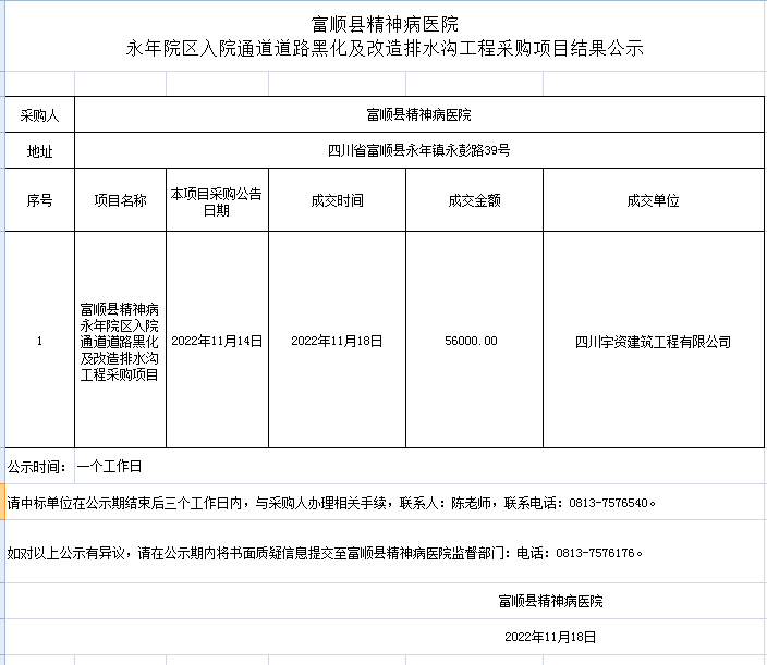 富顺县精神病医院永年院区隔离病房维修改造工程采购项目结果公示