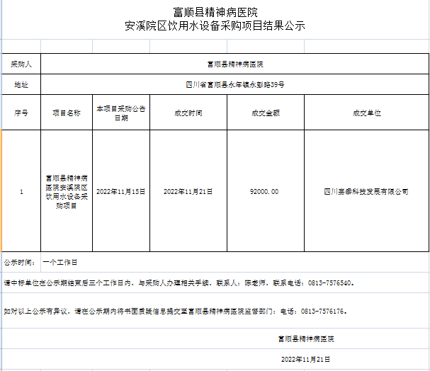 富顺县精神病医院报警系统采购项目结果公示