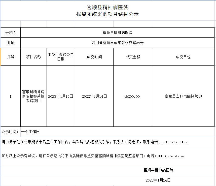 富顺县精神病医院永年院区隔离病房维修改造工程采购项目结果公示