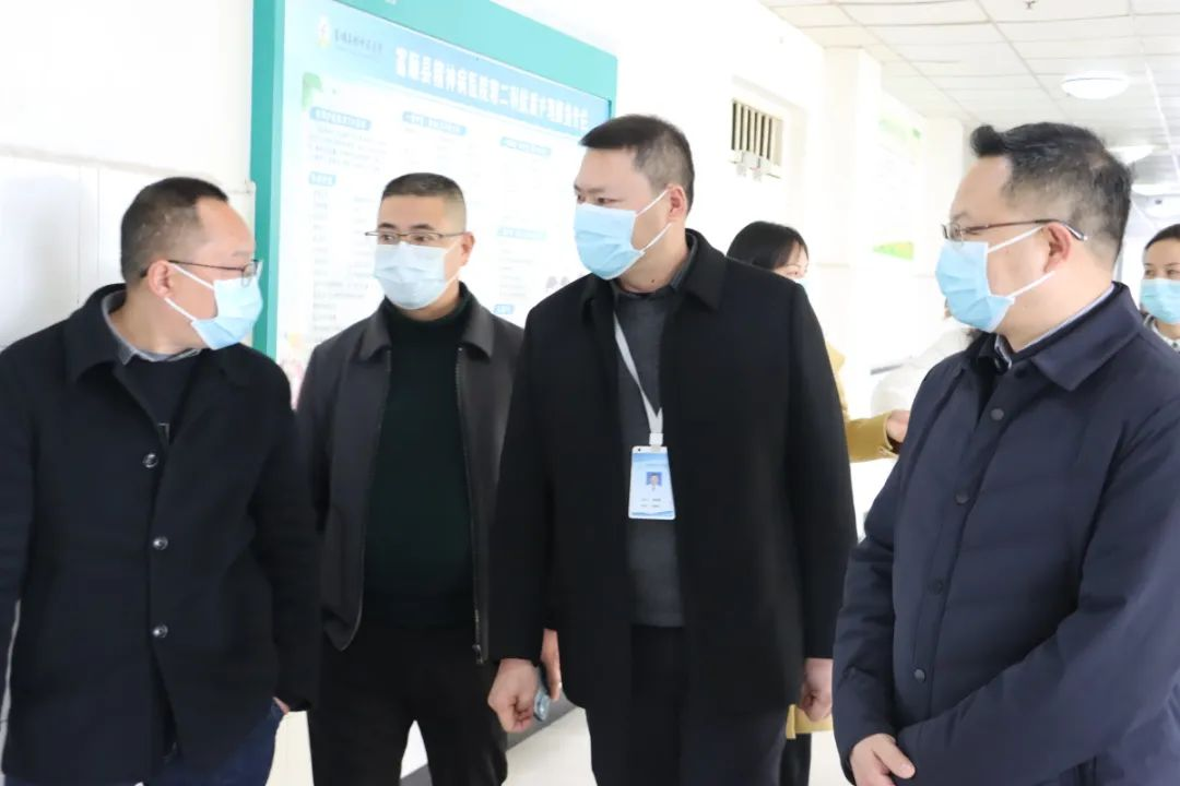 2月19日上午,岳池县卫生健康局党组书记、局长周国庆一行莅临我院考察交流。富顺县卫生健康局副局长孟雄文、富顺县卫生和计划生育监督执法大队 队长何燕、富顺县精神病医院副院长陈远清等陪同。