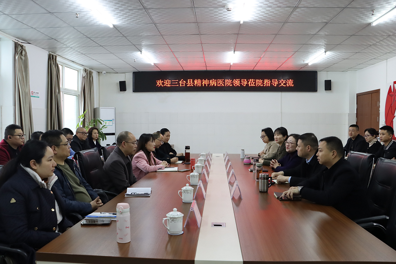 3月1日,三台县精神病医院党总支书记窦成学一行莅临我院就社会心理服务体系建设、临床心理建设等工作进行考察交流。富顺县精神病医院党委书记谢艳、副院长王晓娟等陪同。