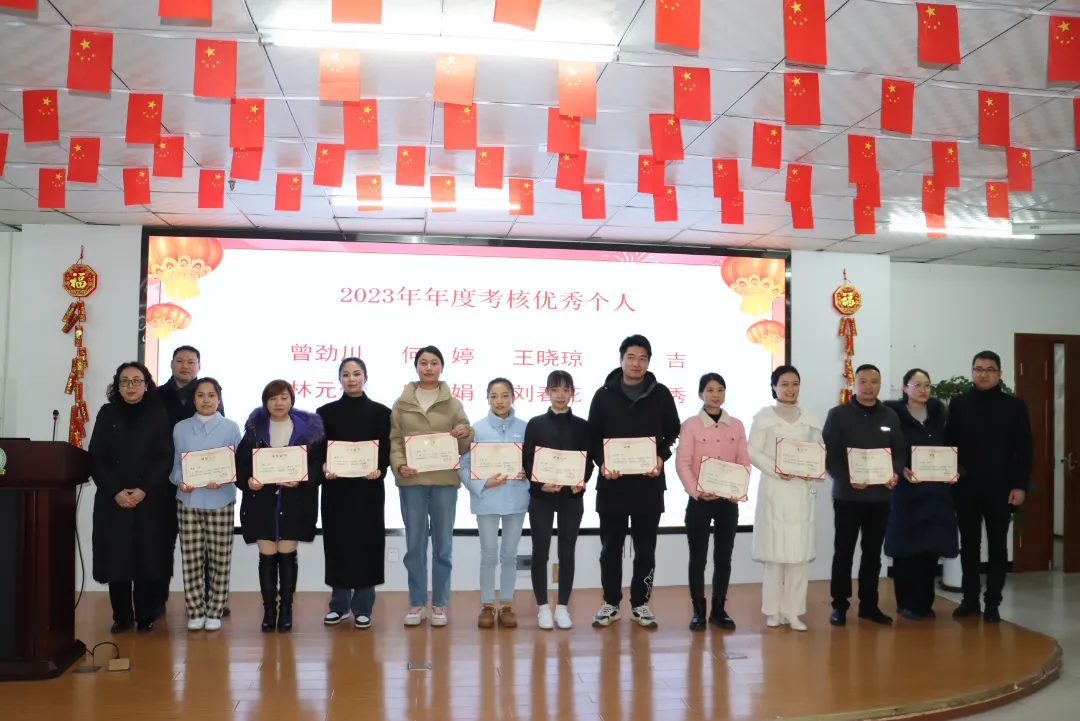 医院财务科科长作2023年度财务工作汇报,医院副院长陈远清宣读2023年年度综合目标考核结果及年度考核优秀个人,纪检监察室主任曾劲川宣读2023年度医德医风优秀个人名单,纪检监察室主任曾劲川宣读“青春风采奖”人员名单,各分管院领导分别安排部署相关工作,医院院长方震安排部署全面工作。他强调各科室要进一步分析和明确科室建设的优势与短板,找准努力的目标,要解放思想、锐意进取、苦练内功、转型发展,让2024年医院工作总目标贯彻落实到位。医院党委书记谢艳作总结讲话。她充分肯定了医院2023年取得的成绩,希望全院职工以先进为榜样,努力争当先进、奋力赶超先进,在新的一年续写新的篇章。她指出,2024年,医院要继续以党的建设引领医院高质量发展,引育人才,持续加强医院管理,提高医院运营效率,让职工有获得感、让群众有幸福感。