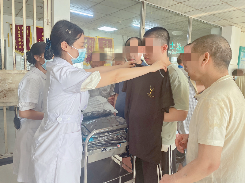 我院精一科,精二科,精三科还分别为病人送上新凉鞋以及新的夏季衣服。患者的喜悦之情溢于言表。