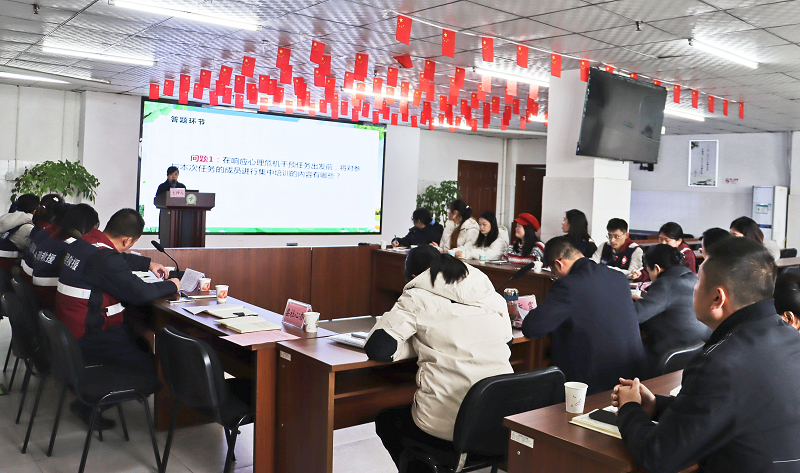 为进一步提升富顺县心理危机干预队伍应急处置能力,做好突发公共事件心理危机干预各项保障工作,切实提高心理卫生应急处置队员应急响应和协同配合素质,11月27日下午,由富顺县社会心理服务专业技术管理办公室、县第四人民医院、县心理学会联合举办的2024年富顺县校园心理危机干预应急演练在我院多功能厅顺利举行。本次演练邀请到县教育和体育局心理教研员陈明月到场指导,县第四人民医院领导、县心理危机干预队员、县心理学会部分会员、县“心安富顺”片区示范阵地心理社工共计20余人参加。